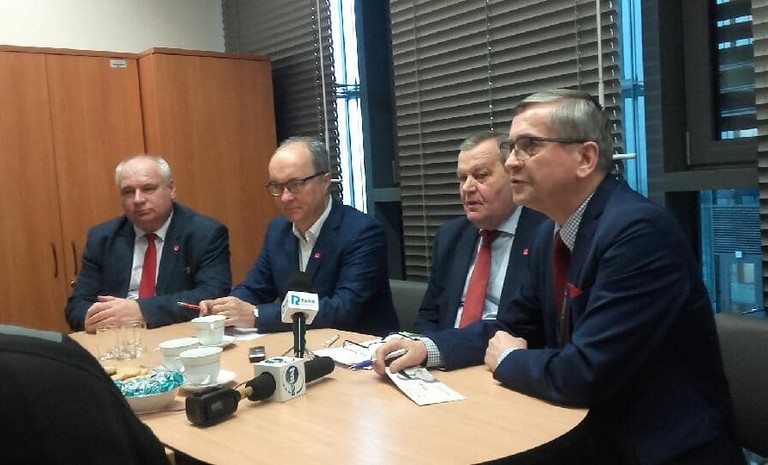 Konferencja prasowa lidera SLD Włodka Czarzastego i radnych klubu SLD-Lewica Razem Województwa Wielkopolskiego dotycząca dramatycznej sytuacji w rolnictwie. SLD opowiada się za wprowadzeniem cen minimalnych na produkty ...